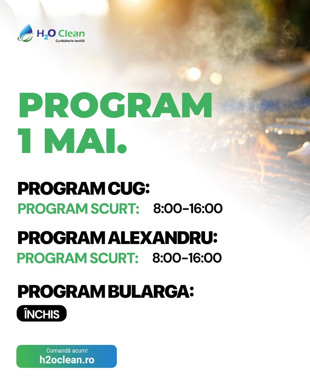 Suntem prietenoși cu mediul înconjurător, curățătoria noastră nu utilizează solvenți și toate produsele sunt biodegradabile. Spalătoria ecologică a fost creată pentru a vă ușura viața, noi ascultăm nevoile voastre și dăruim timp cu cei dragi.